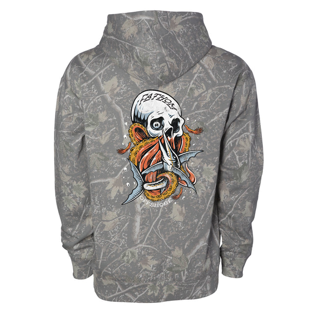 Built for comfort and made to last, our new Deadwood Hoodies feature a premium heavyweight body in the striking Deadwood Camo pattern. Constructed from an ultra-soft cotton/poly fleece blend, this hoodie delivers rugged warmth with a clean, structured fit. The heavy gauge drawcord, durable ribbed cuffs and waistband, and double-needle stitching make it as tough as it is comfortable - perfect for cool mornings on the water or even crisp evenings in camp.
