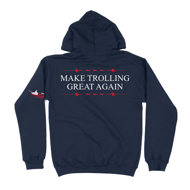 Make Trolling Great Again Hoody Navy Heather - MD is backordered and will ship as soon as it is back in stock.
